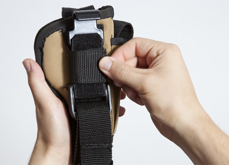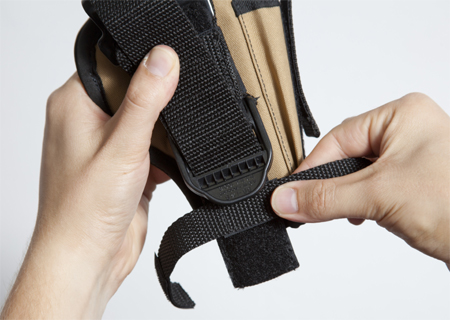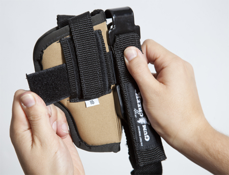 Now, position the lower holster strap where you want it along the holster. You can detach and adjust this strap vertically.