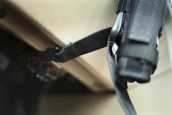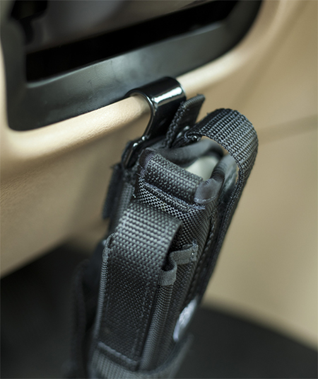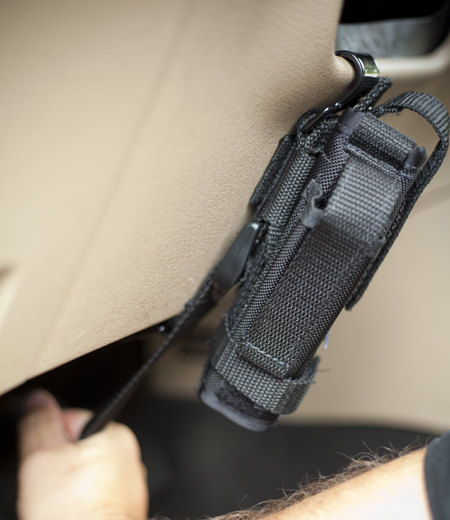 Wrap the lower strap around your holster and attach. The mount is now ready to position in your vehicle.